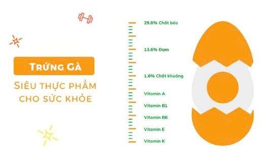 Trứng cung cấp các vitamin và khoáng chất quan trọng. Chúng chứa vitamin D (quan trọng cho việc hấp thụ canxi), phốt pho, vitamin A (cho thị lực khỏe mạnh, làn da và sự phát triển của tế bào) và hai loại vitamin B phức hợp mà cơ thể bạn cần để chuyển hóa thức ăn thành năng lượng. Trứng cũng là nguồn cung cấp riboflavin, selen và choline rất tốt.